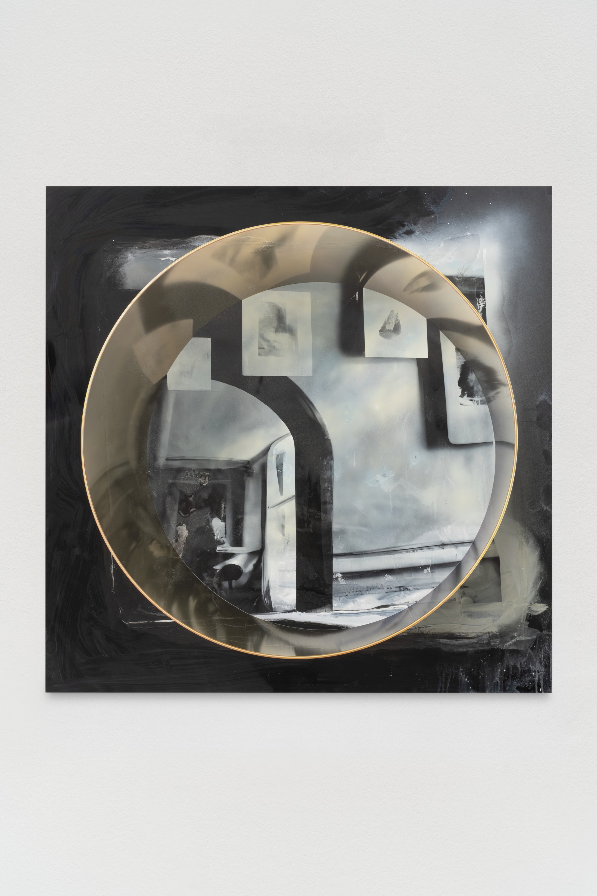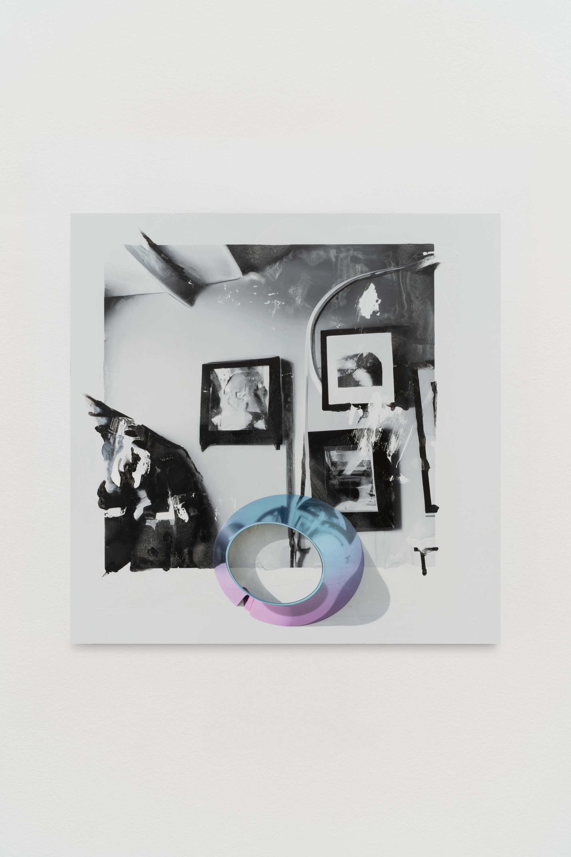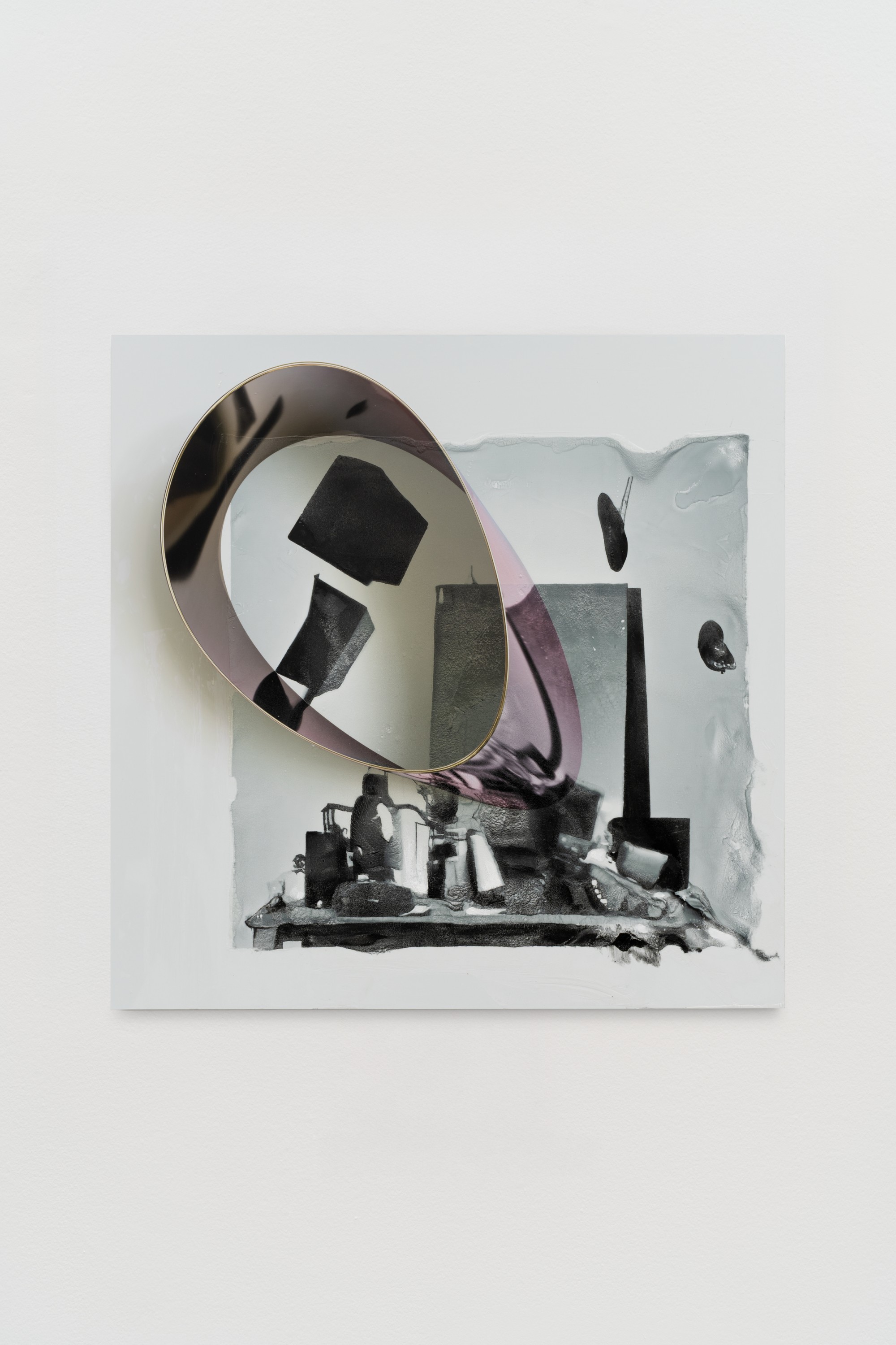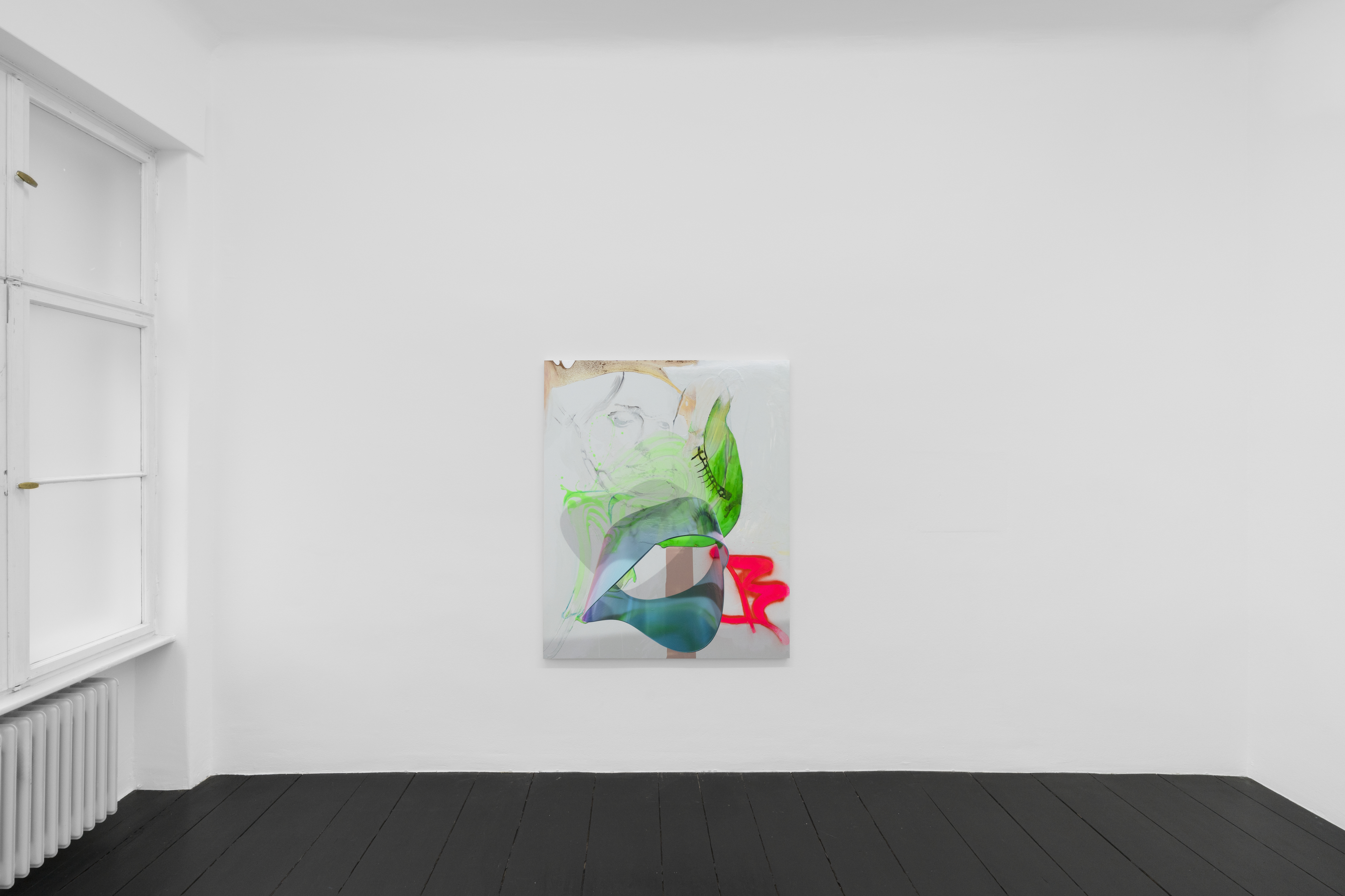 People do want, and do care—that’s where art comes from. The paintings in this show were made by a person, using a camera, brushes, paints, hands. A human printed a picture on a plastic sheet, pressed it into a pool of liquid plastic on a metal plate, and ripped it off, leaving a scarred after-image. Dragged fingers through the wet print, then tilted it to make it drip. Took a photo of that, and fed it into software. Created mirrored lenses and portals to unite, in reflection, the machine-made and the human-made. Only a person comes in at the end and muddles everything, paints out areas, adds lines, acts on a whim—what if I just... I love it that I can have a picture that wasn’t made by a body, it’s one of the best things we’ve done recently, but it takes a body to make art. A machine picture is a result, and art is an offering.