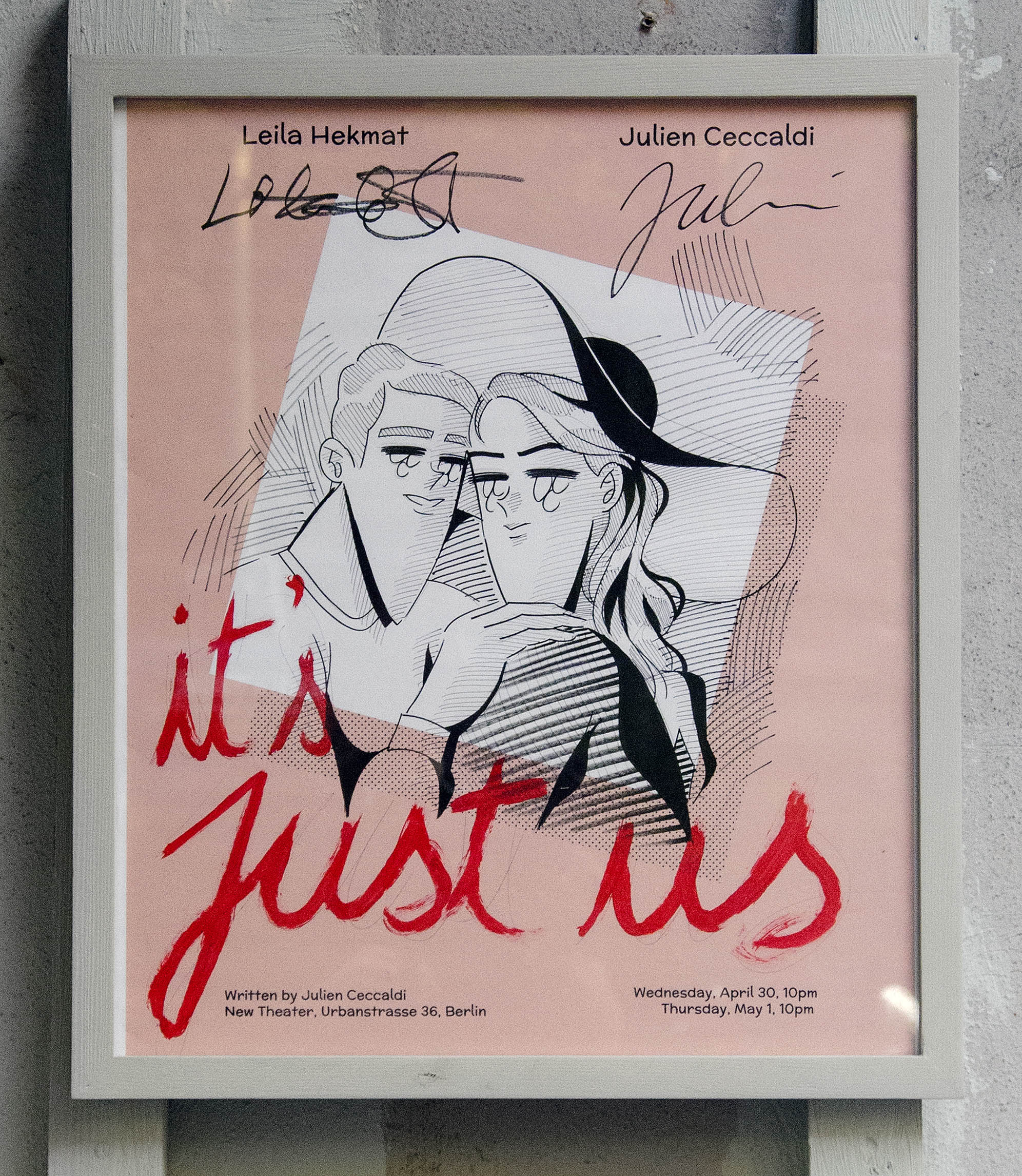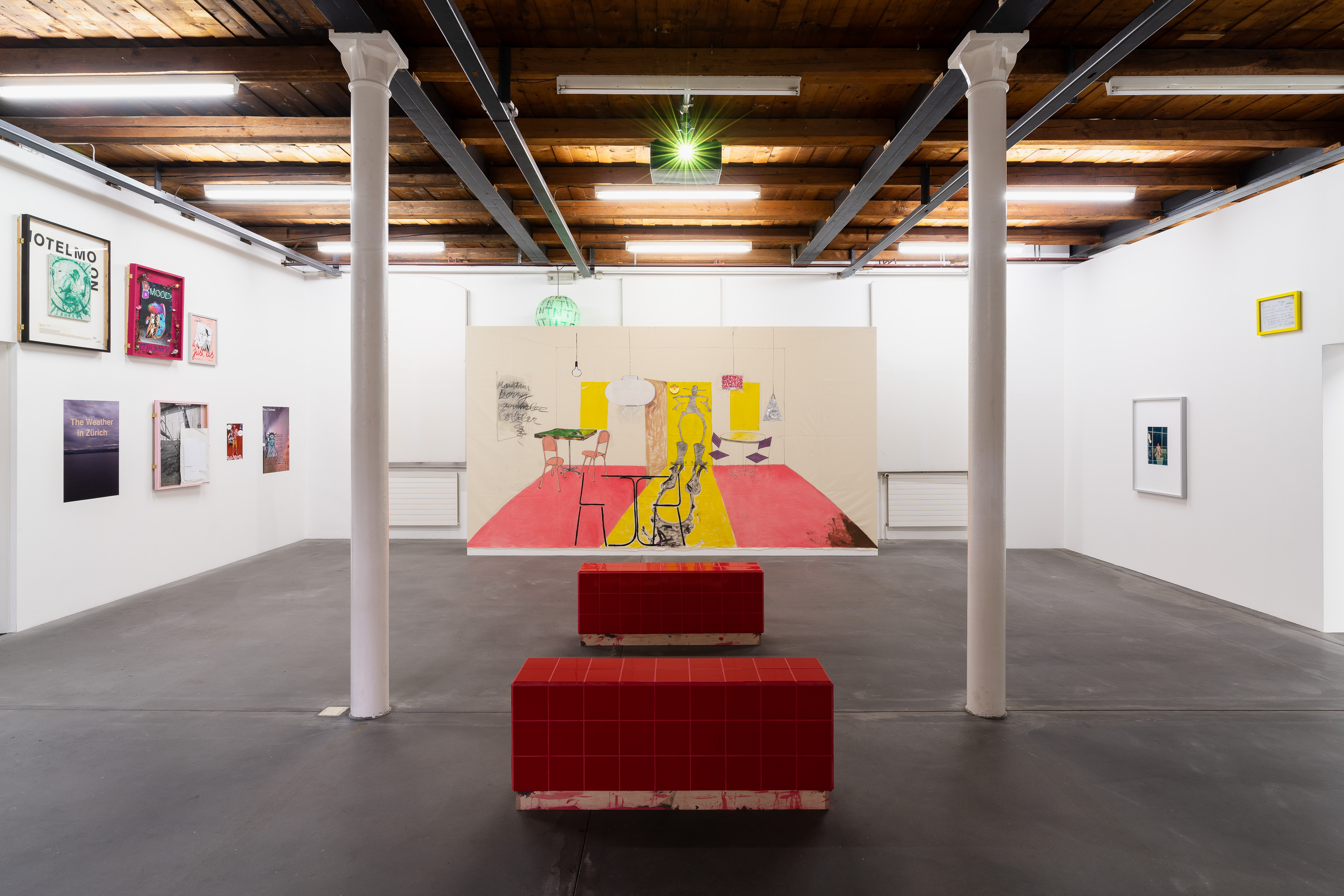 These early works carry the seeds of the numerous interfaces the artists would orchestrate throughout the decade in Berlin, where they relocated in 2011. There, the artists would run a string of bars and theaters, where they staged over 40 collaborative theatrical performances. These included plays at New Theater, which they opened in 2013, as well as a number of formal productions in the Grüner Salon of the Volksbühne, the “People’s Theatre”, Berlin’s iconic theatre located on Rosa–Luxemburg–Platz. Their latest project is called TV, a bar that, in its off-hours, functions as a film studio where Calla Henkel and Max Pitegoff are currently shooting a sitcom titled Paradise.
