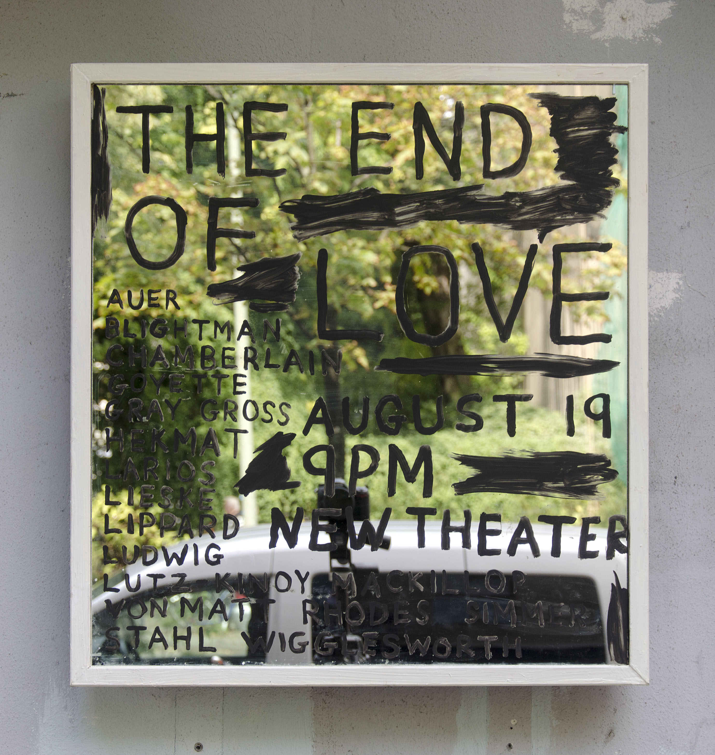 Whether a drink, a play, or a sublet, Calla Henkel and Max Pitegoff score and choreograph social interactions among artists, teasing the limits of what might define a creative community, however fictional it may be. Their works continuously perform what Benjamin H.D. Buchloh famously called “allegorical procedures” – in that they are infused by, and constantly refer outward to the culture in which they were created. The political framework that conditions the limits of their communal freedom and its eminently fragile autonomy is directly addressed in their plays and performances. Their output aimed at exhibition spaces – which includes most of their photographic work – espouses a viewpoint that is largely peripheral to their community organizing, painting a deadpan picture of the economic scaffolding that sustain such communal exchanges. Following FUKNAB, no direct documentation of their live staged events was made public.