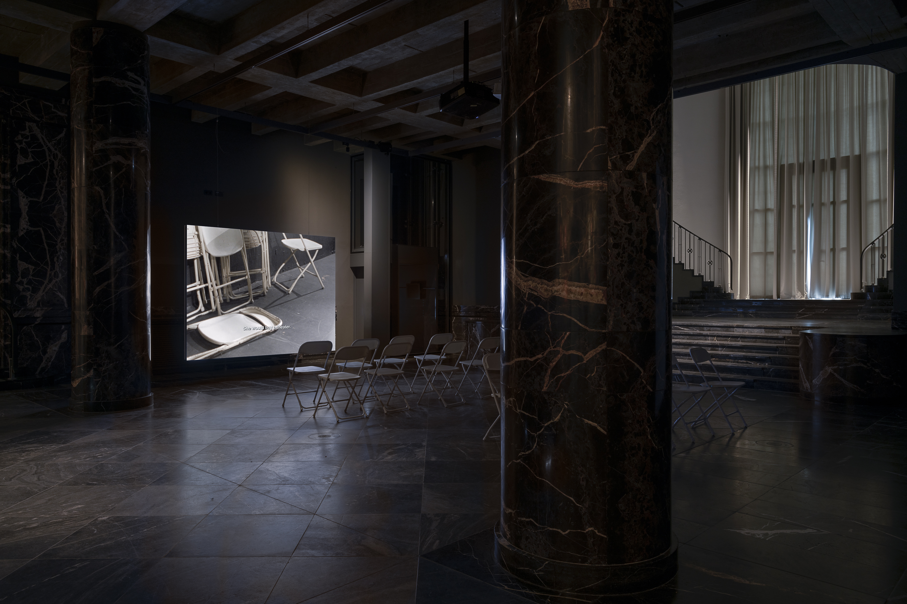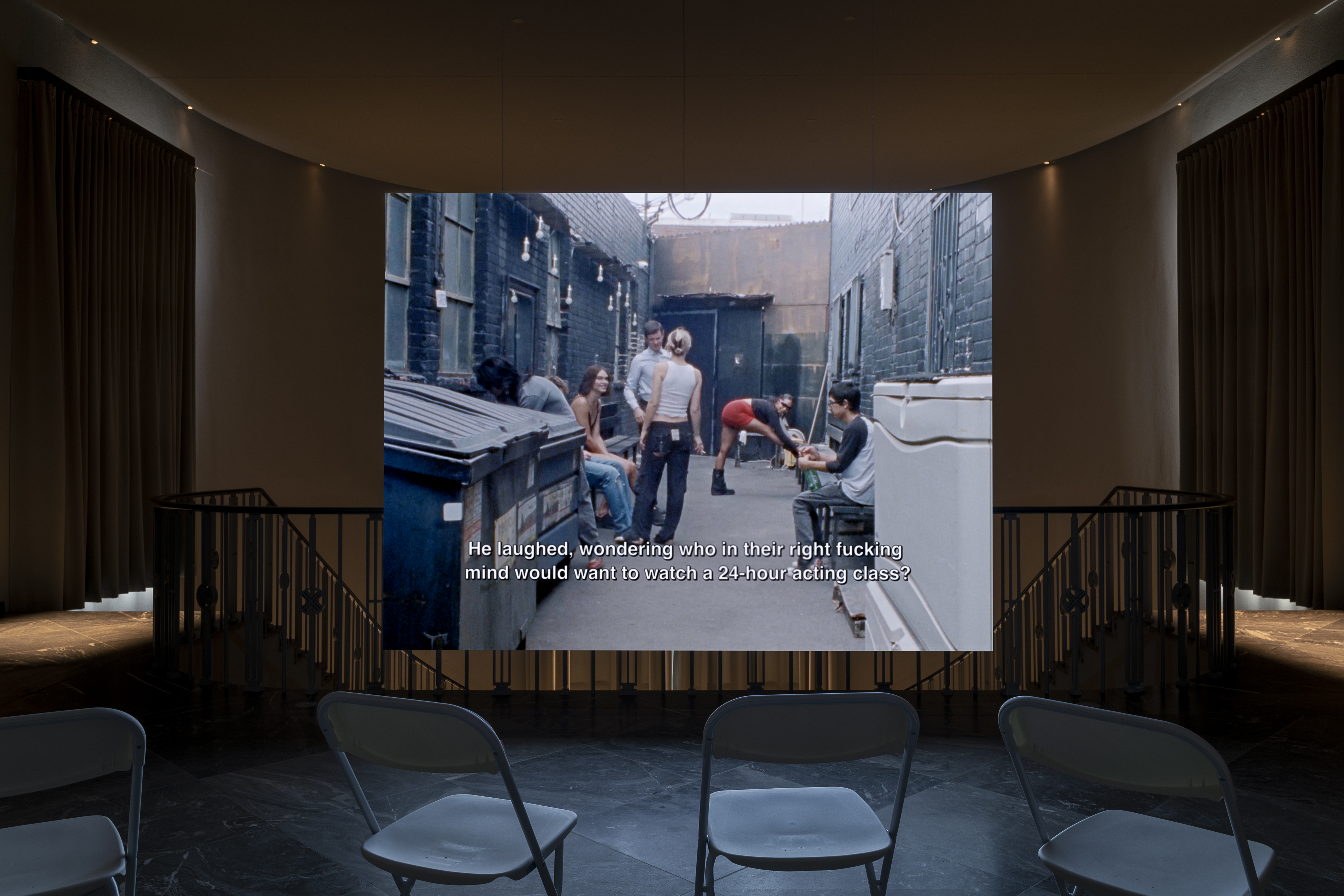 For their solo exhibition at Fluentum, the artist duo connects their activities back to their former base in Berlin, with their ongoing photo series Casts (2018–) linking past and present projects and collaborators. THEATER comes directly after Henkel and Pitegoff’s last film, Paradise (2020–2022), shot over three years at TV Bar, the bar they operated in Berlin-Schöneberg. Both films run on of the unpredictable electricity of these spaces and the people who populate them, letting lived experiences guide the films’ narratives while asking broader questions about documentation, the performance of labor,
