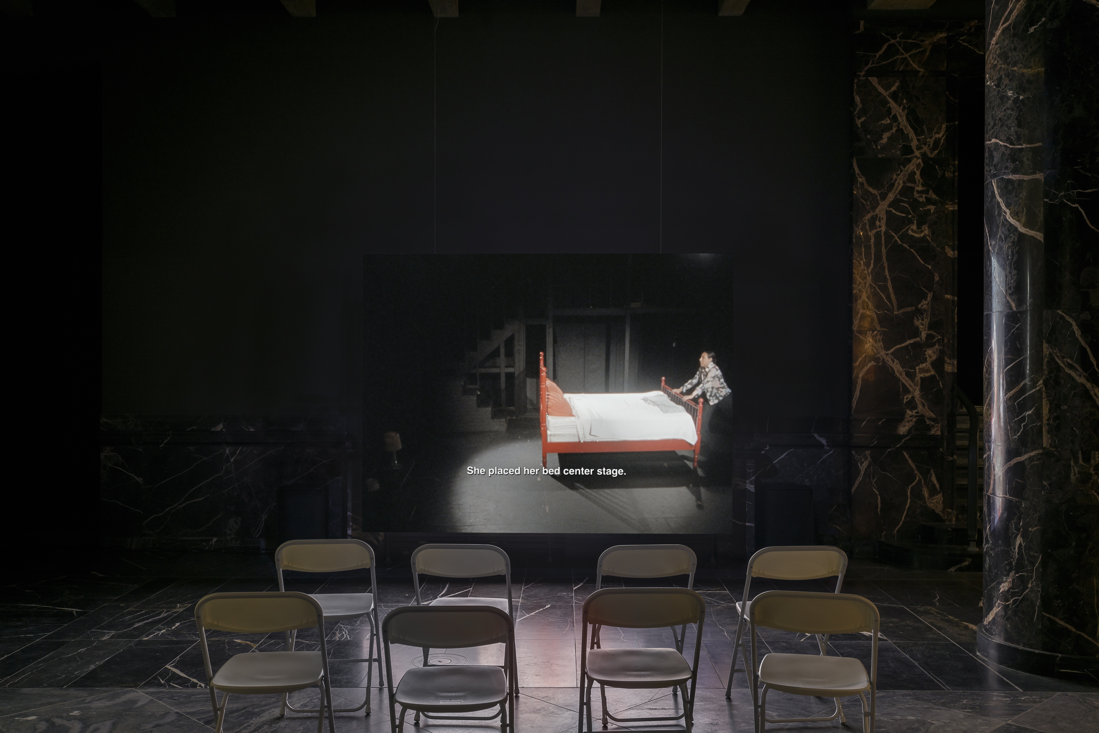 Calla Henkel and Max Pitegoff’s new film THEATER is set and shot at New Theater Hollywood in Los Angeles, the black box theater space the two artists have been operating since January 2024. Blending fiction and performance documentation, THEATER uses footage shot during rehearsals of productions staged at New Theater Hollywood to construct a narrative around a characternamed Kennedy, played by filmmaker Leilah Weinraub, who buys a fifty- seat theater after a car accident and subsequent cash settlement. In the film’s first three episodes premiering at Fluentum, Kennedy moves into the theater and attempts to build an ensemble. In her desire for community, she faces the cult-like power it takes to keep a group together, and the unyielding hope of transformation through fame–all haunted by strikes, ghosts, exploitation, and the maddening reality of living inside of other people’s ambitions.