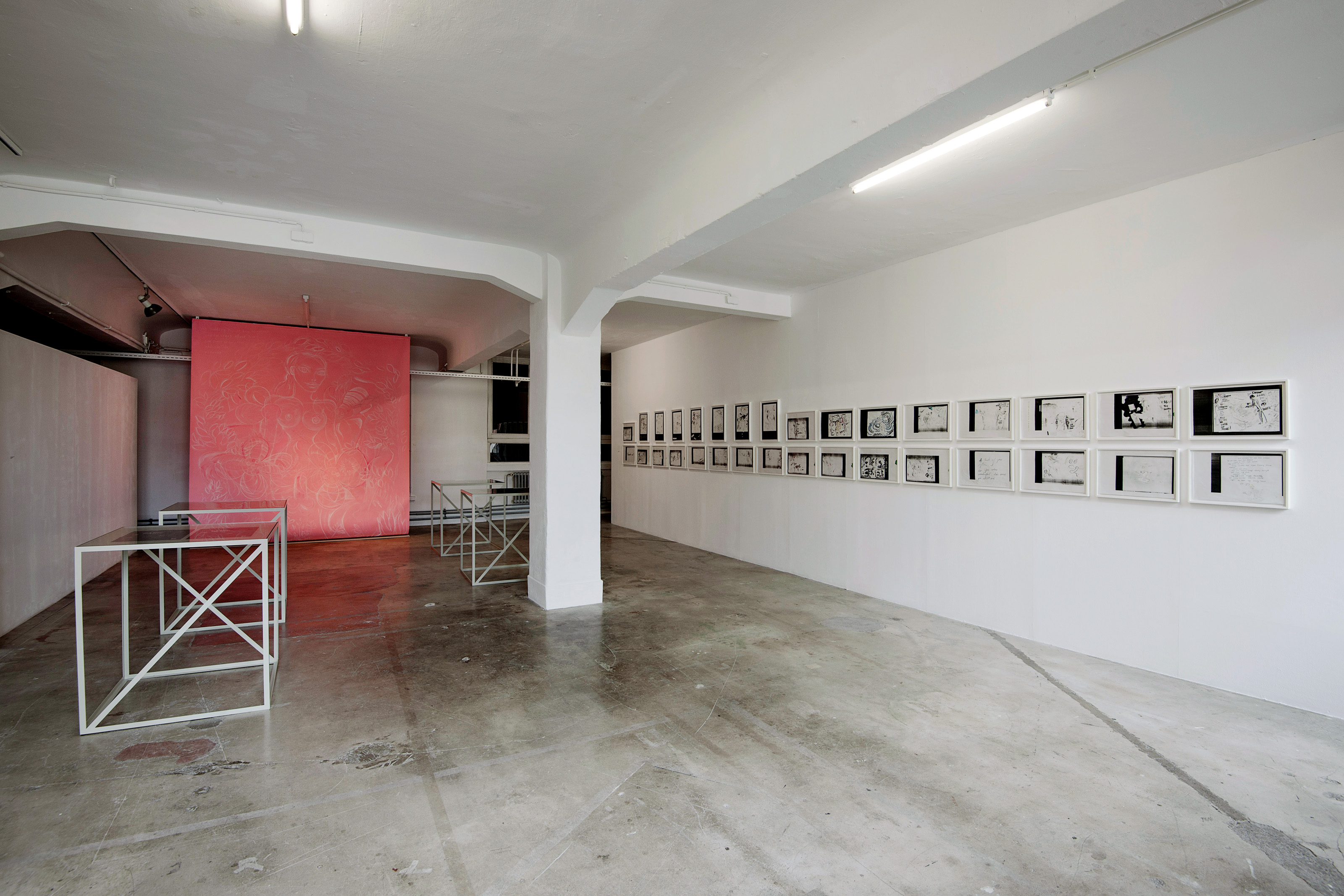 A feature of the exhibition and the focus of the associated publication is Cantor’s film Pinochet Porn. Originally a suite of drawings named Circus Lives from Hell (2005), Pinochet Porn is an episodic narrative about five children growing up under the regime of General Augusto Pinochet in Chile. Featuring a cast of close friends and collaborators, and shot in New York and London, Pinochet Porn stages a libidinal critique of the systematic and sadistic destruction of self-expression and experience. History is made observable through Cantor’s fictive speculations on private experience within a totalizing political order. The story ends with a question: Is tragedy a choice?
