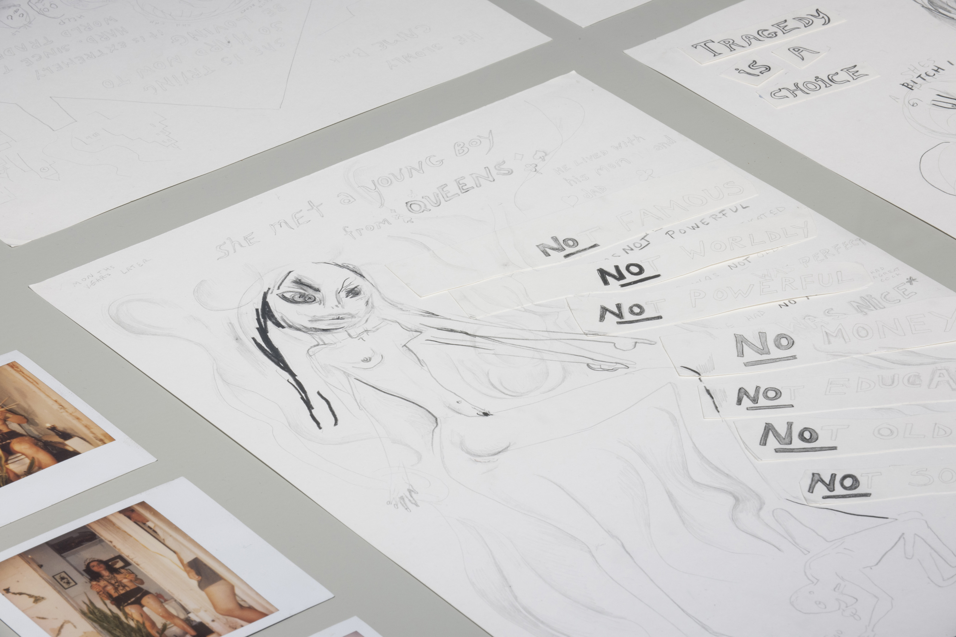 Ellen Cantor combined ready-made materials with diaristic notes and drawings to probe her perceptions and experiences of personal desire and institutional violence. In her drawings, paintings, collages, and videos, Cantor lifted characters and sequences from iconic films, reorienting the ideological transmissions of the source material. Fictional figures from Disney cartoons, cult horror films, New Wave cinema, and family movies provide a visual foil to Cantor’s intimate disclosures. Magnetised by the doleful naivety of characters such as Snow White and Bambi, Cantor would, in her drawings, extend their narrative horizons to include vivid sexual encounters and crisis-ridden relationships.