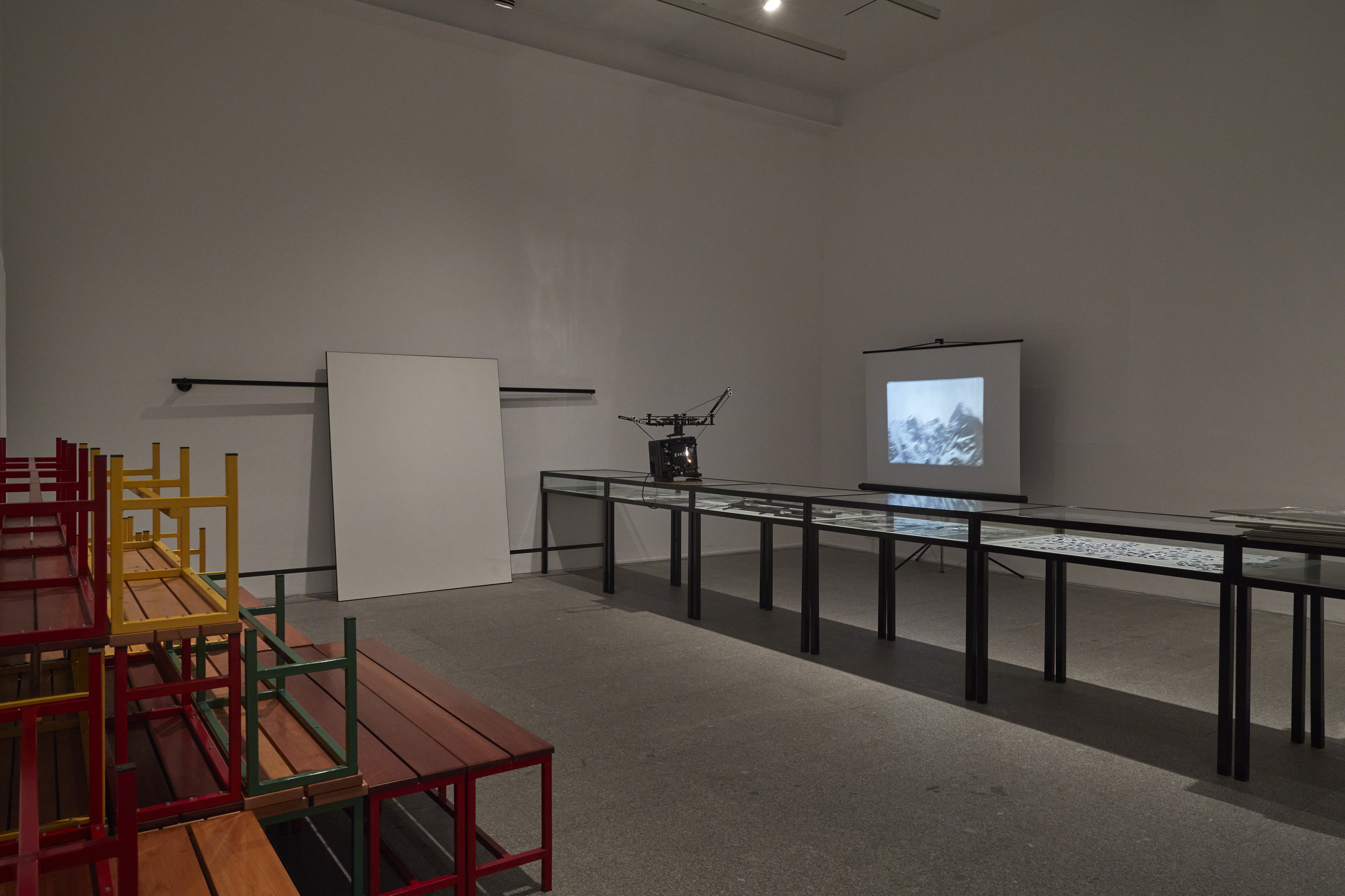The starting nucleus of the show is made up of Aranberri’s most representative works, in which he allows his ongoing concern with resignification to be discerned through the political actions of places, be it natural or man-made spaces, and the social consideration of which has been diminishing and has been partly transformed by the social, economic and political needs of the time. These reflections are cast in proposals such as the unfinished project of the Lemóniz nuclear plant, which would never become operational; Exercises on the North Side (2007), a 16mm montage around mountain cinema as a genre in its own right; his research into the modification of landscapes and political and economic powers highlighted in works such as Política hidraúlica (Hydraulic Politics, 2004–2010); or his 2007 action of blocking access to a natural Iritegui cave in Oñati, Gipuzkoa.