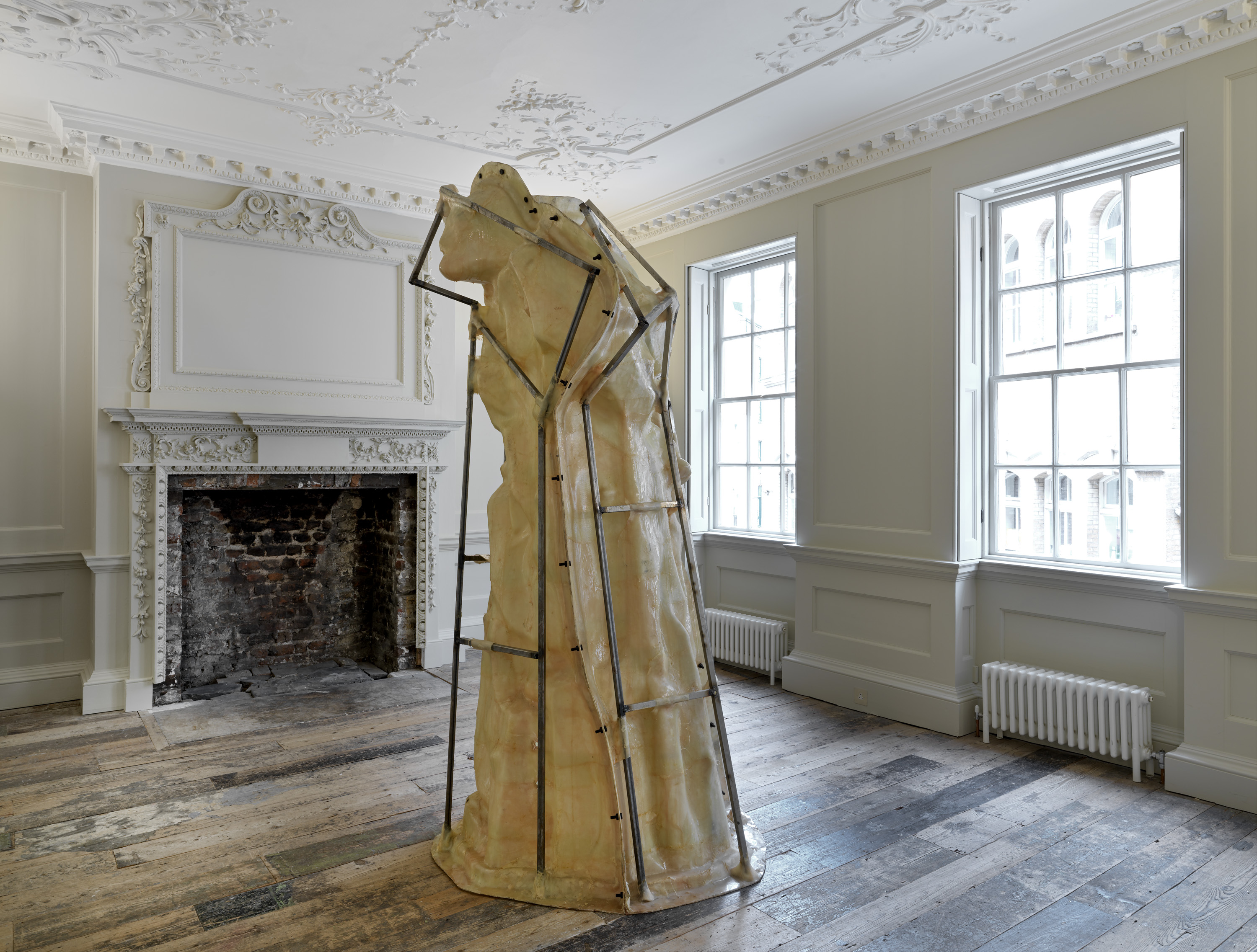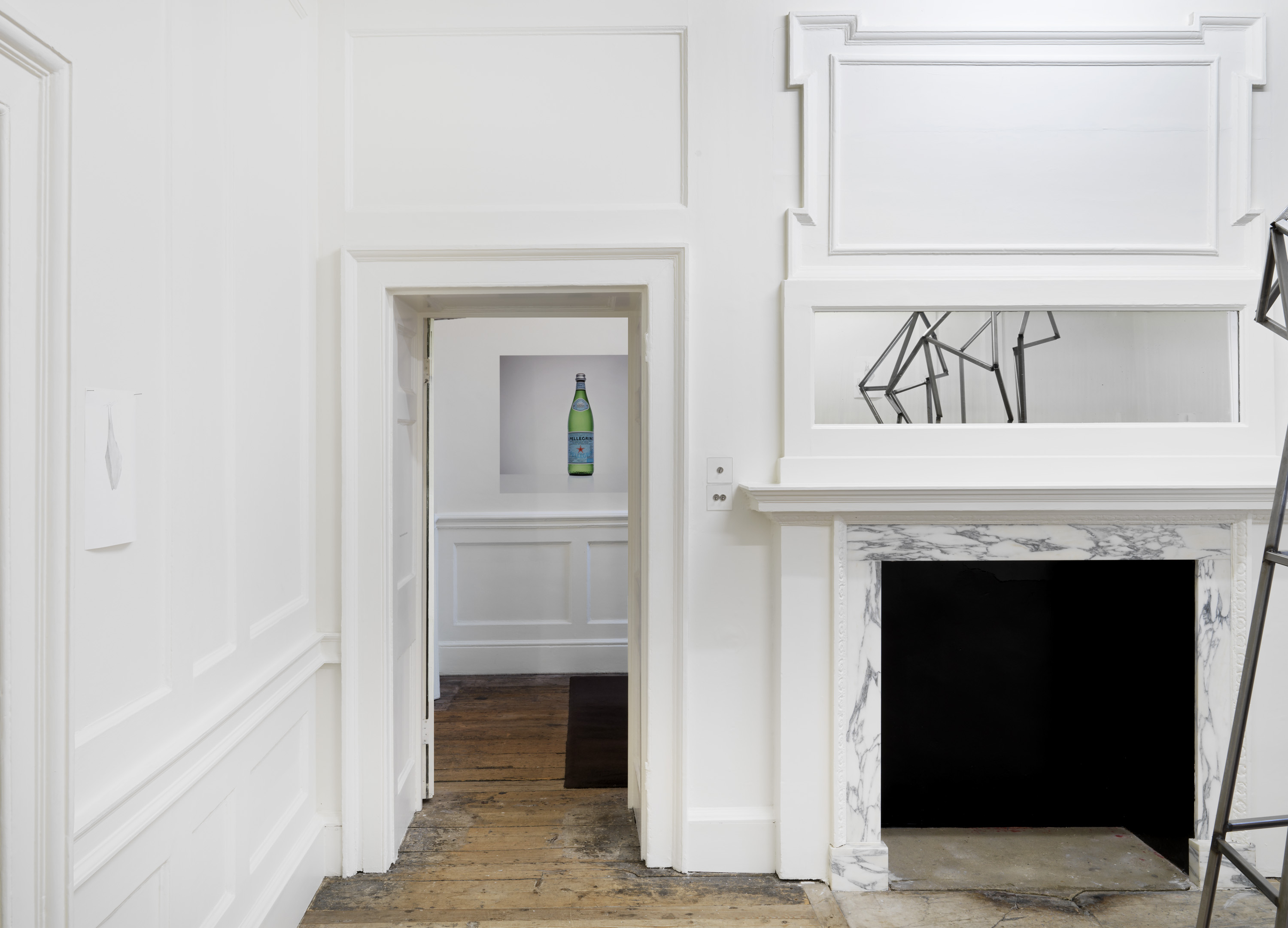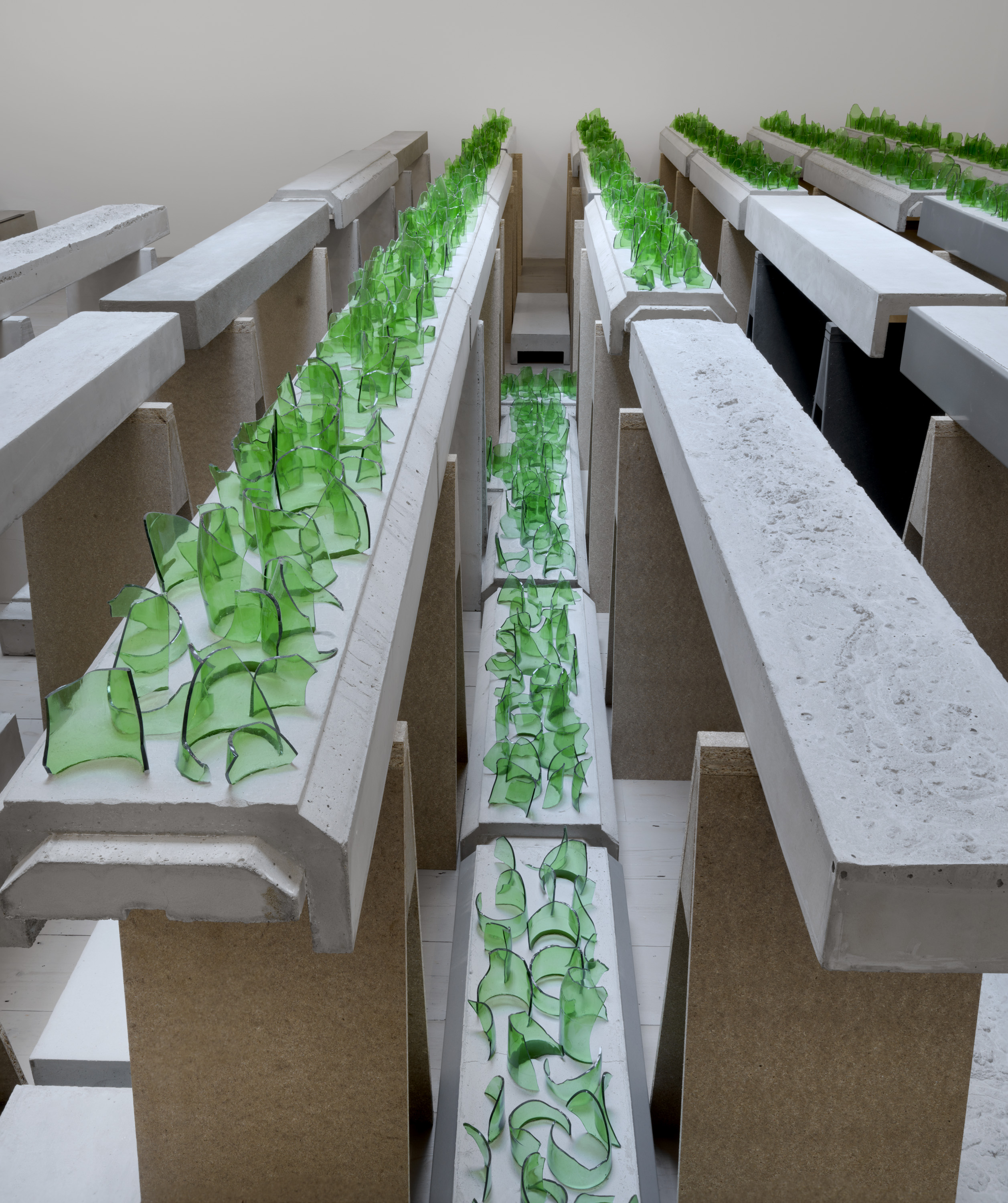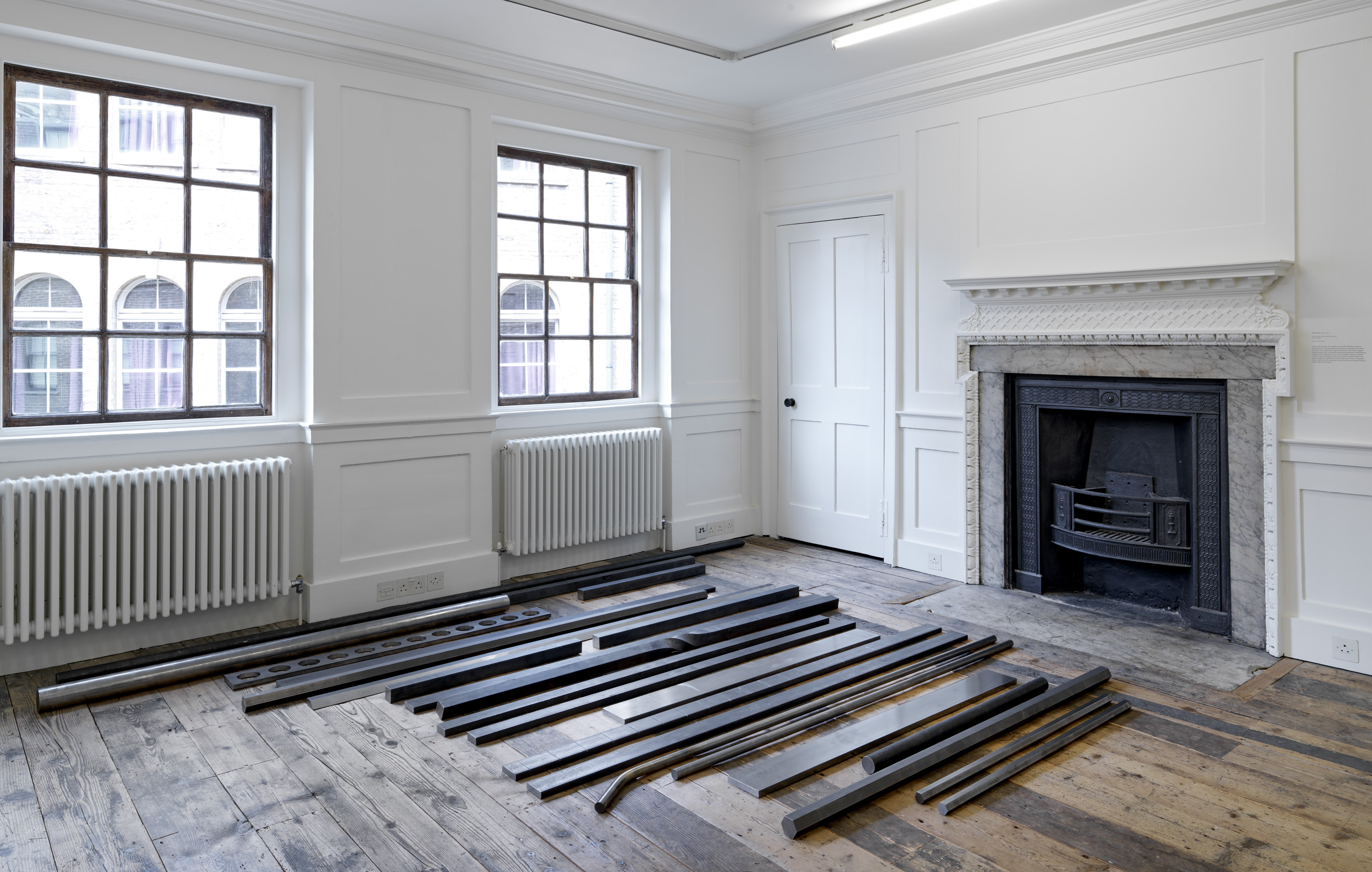 The installation in gallery 1 appears like a display in a geographical society, recounting the uncertain outcome of a mountaineering expedition. The central gallery has become a landscape of smashed glass, as if returning urban forms of makeshift security and luxury wellness to nature. The origins of the sculptural work in the far gallery lie in Aranberri’s construction twenty years ago of a cave wall and habitat for bats, while the role of the artist in the unpicking of histories is suggested in the stripped-back statues on the first floor. Throughout, Aranberri uses uncaptioned photographs and drawings, as well as steel sections, selected or made for this exhibition as commentaries and footnotes on its itinerary.