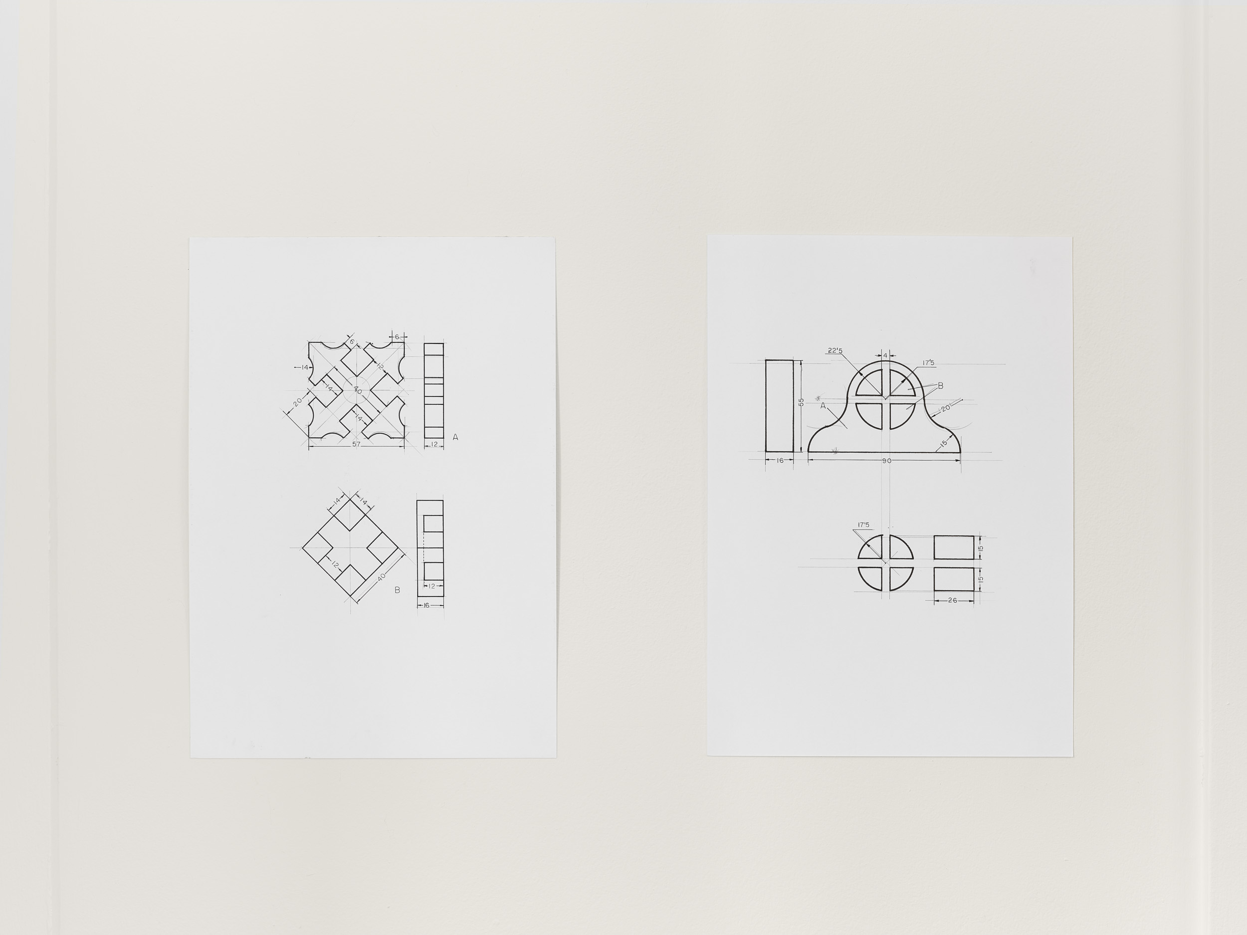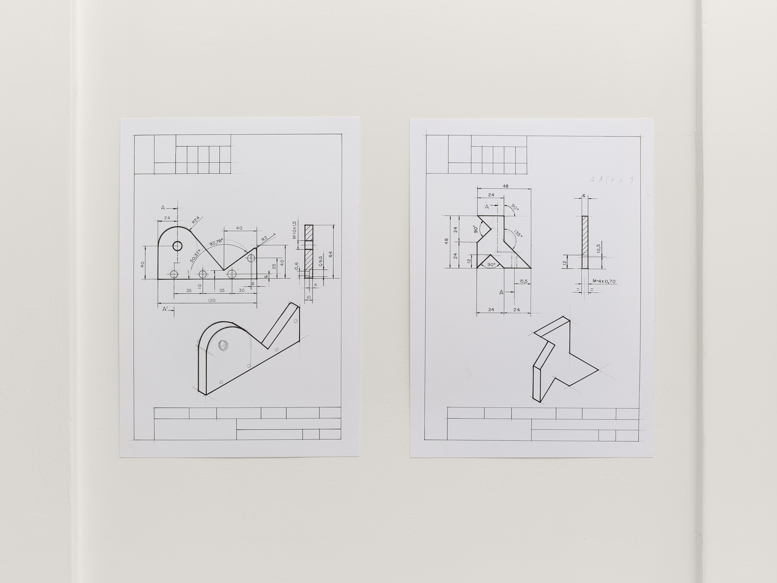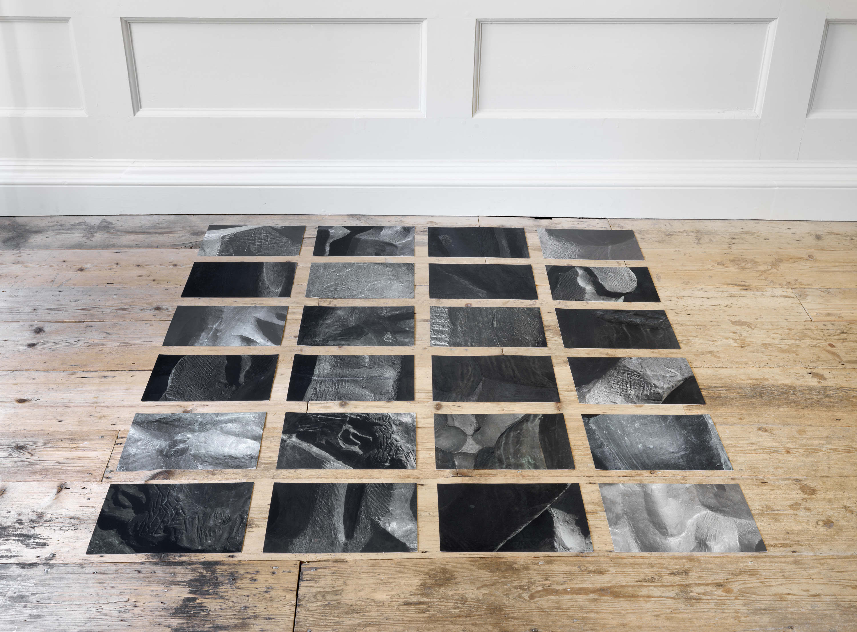 On the second floor are drawings of steel parts, once used as exercises to train Spanish apprentices in armaments manufacture, later adapted to teach steel cutting in industry and finally appropriated for minimalist sculpture. The arrangement of Aranberri’s work into modules – forms repeated with differences – reflects a practice developed after minimalism. While there are echoes in his work of the approaches and processes of Robert Smithson as well as Arte Povera from the 1960s and 70s, there is a knowing Romanticism in his view of the subsuming landscape. Aranberri is also mindful of modern Basque sculptor Jorge Oteiza, whose abstract forms partly inspired the void expressed by his cave wall, collapsed much later into sculpture for a gallery.
