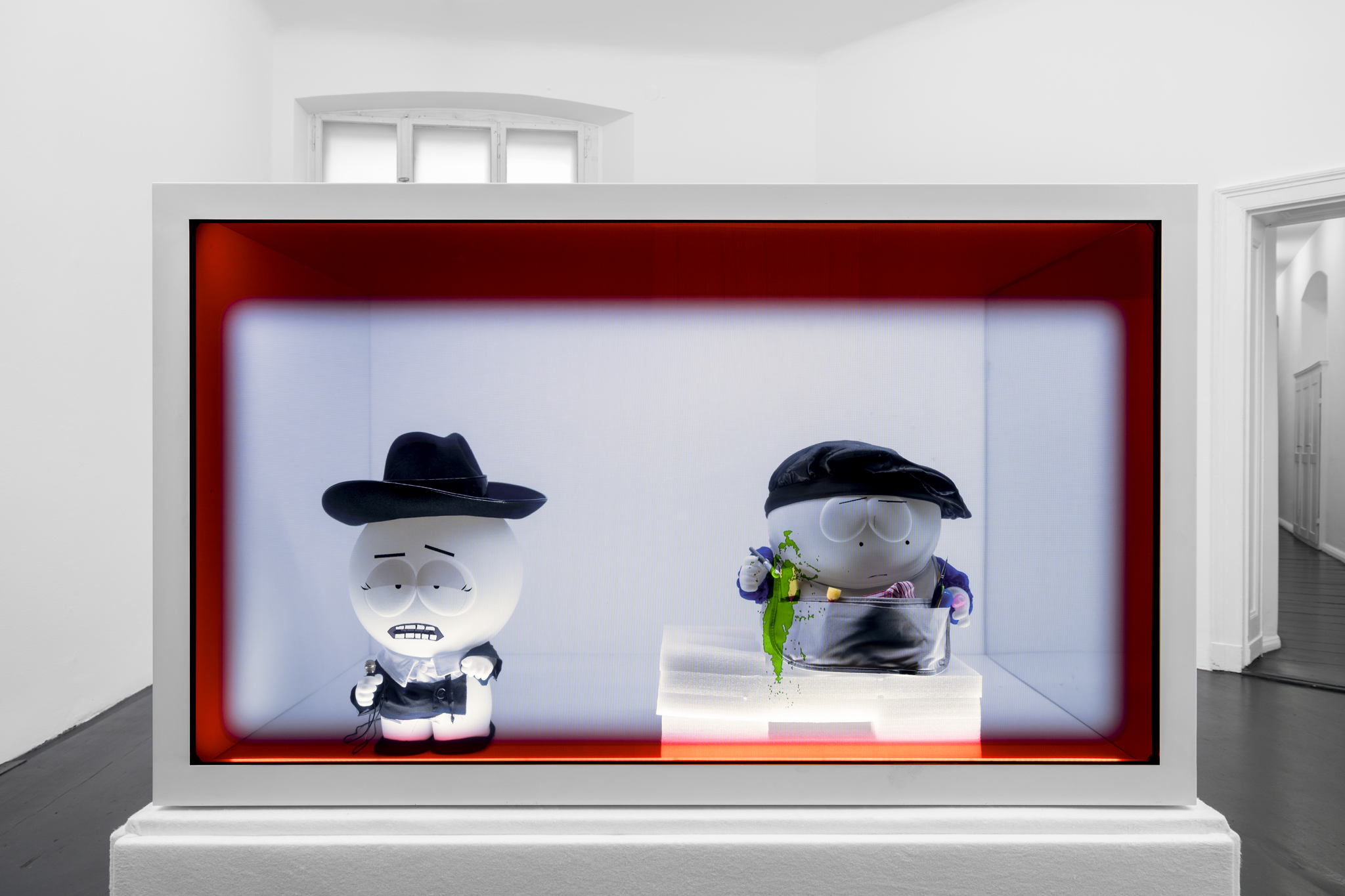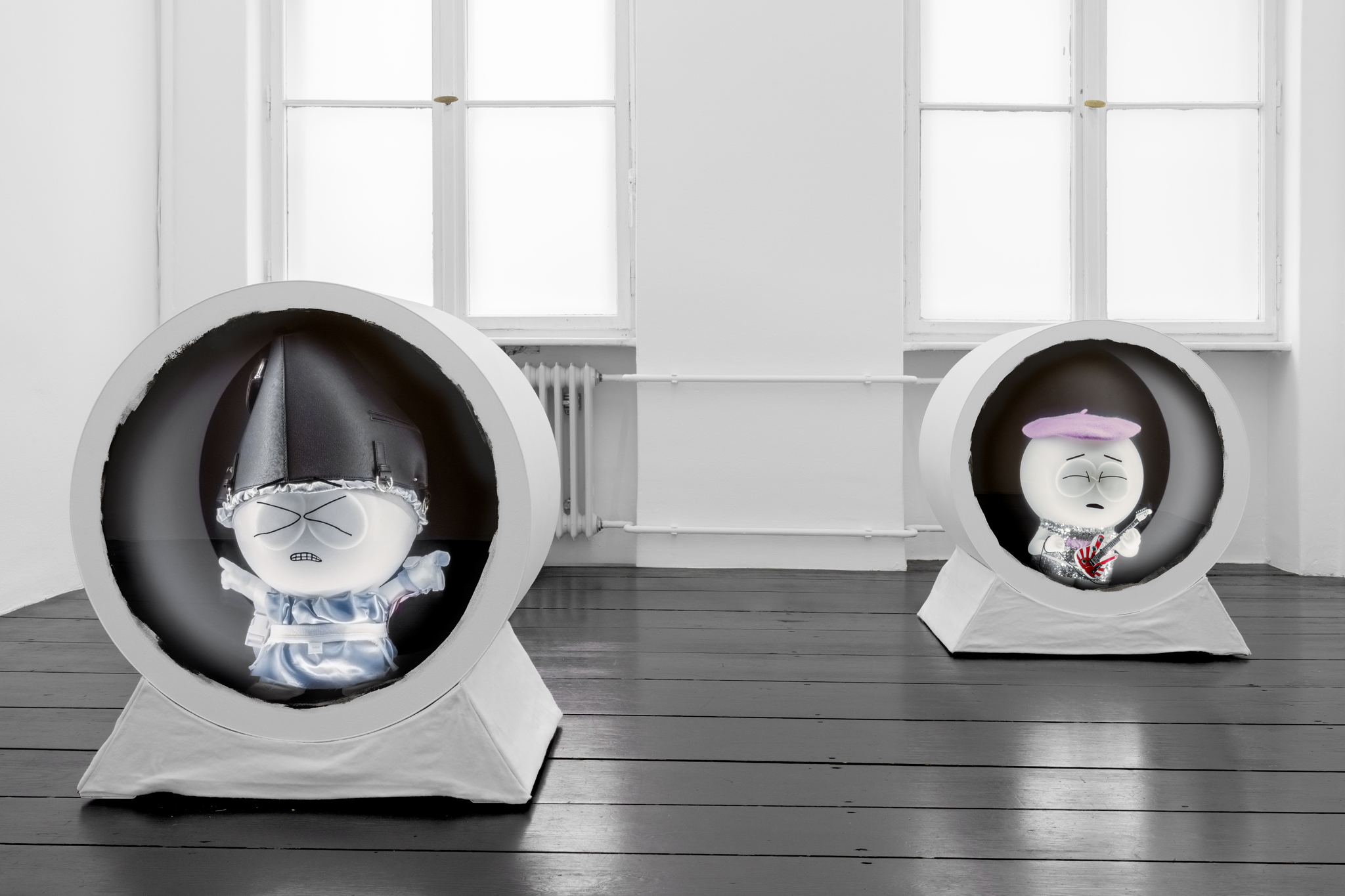 There is a problem in the celestial test tube, the crystals in our TVs have a life of their own. Normally they would be in a more relaxed phase, but recently their globules have grown at an incalculable rate, creating their own sort of crude mindfulness. This was all a bit alarming, we generally always avoided working with the bodily figure, but maybe we are warming up a bit after years of working with the more automatic forms of toy design.